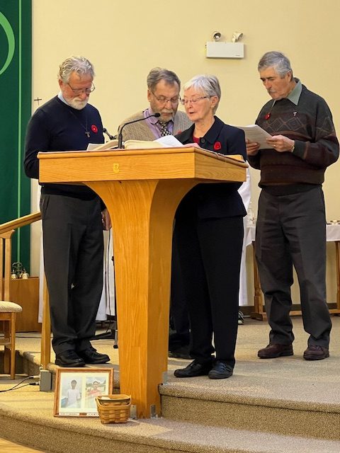 Blessed Father Frederic Fraternity members celebrating the professions of Frank Allen and Deacon Howard Gotell November 1, 2025 at Holy Family Parish, Amherst, NS